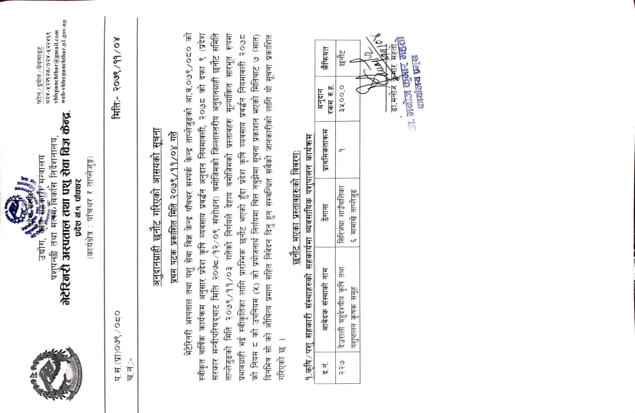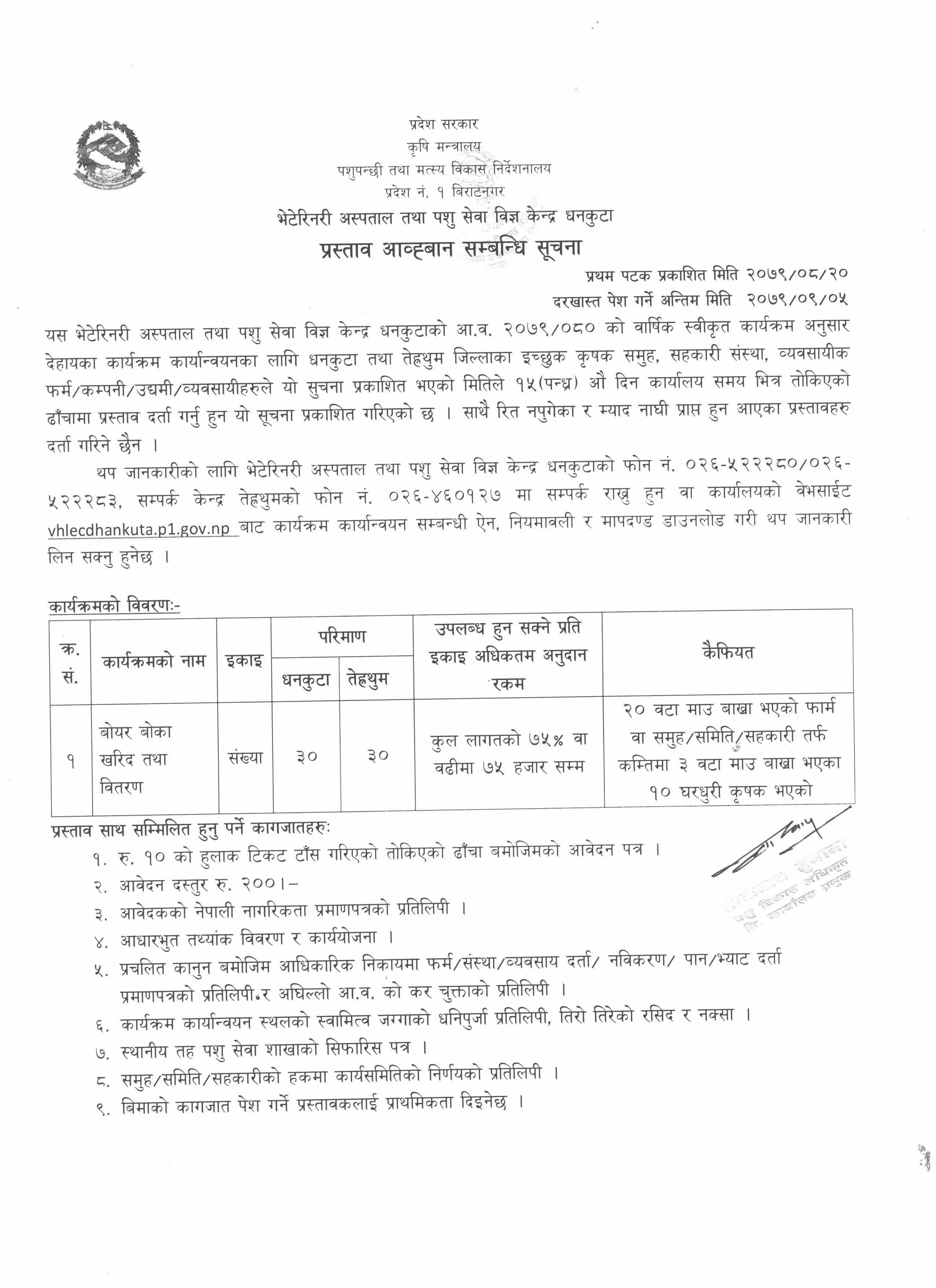 भेटेरिनरि अस्पताल तथा पशु सेवा विज्ञ केन्द्र धनकुटाको आ व २०७९/८० को विशोष अनुदान तर्फको सुचना आवहान